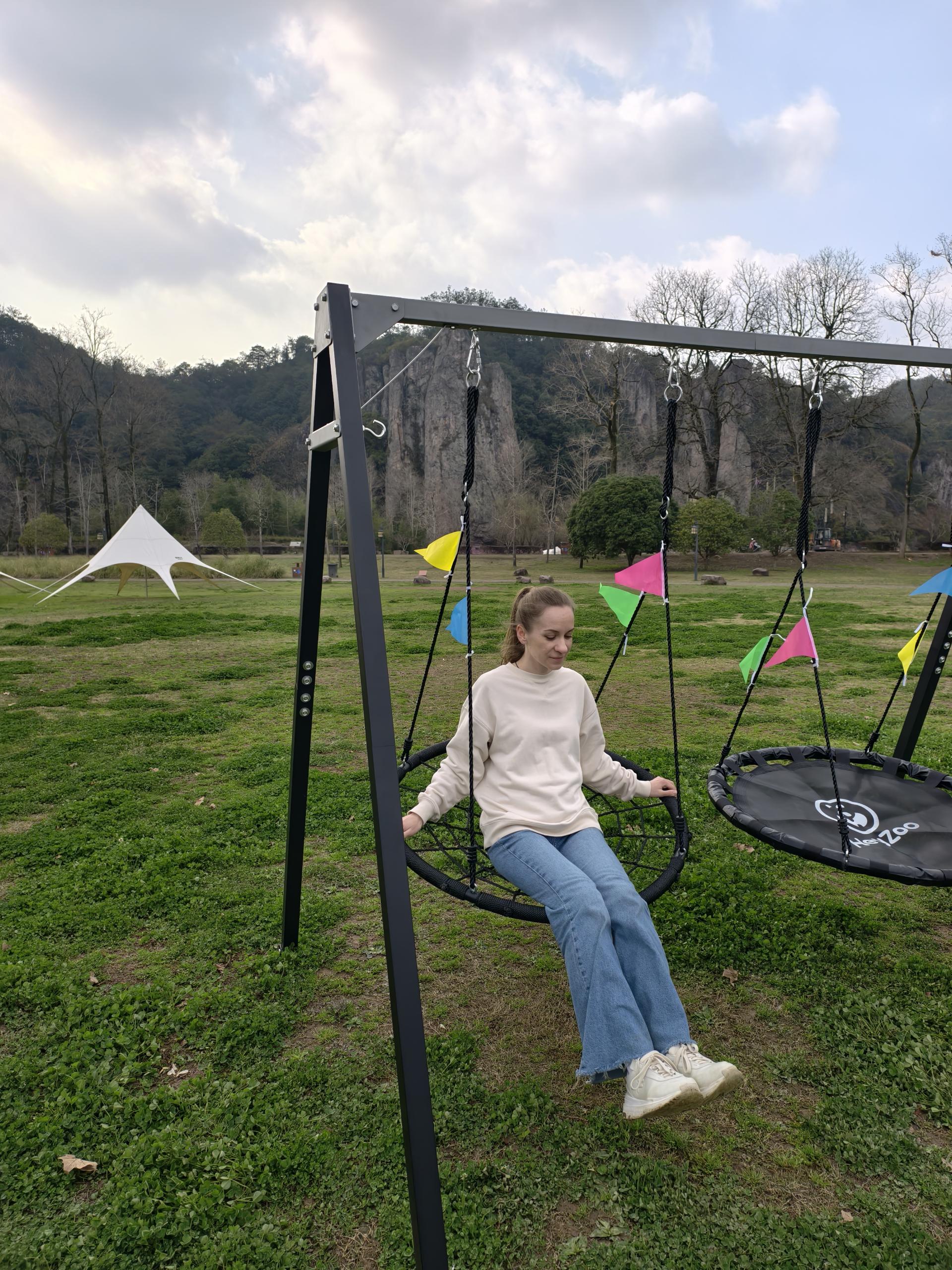 3. After-sales guarantee and reputation: this swing has 1 year or more warranty' (mainly covering the welding parts of the swing frame, swing connecting parts, etc., which are prone to damage), avoiding subsequent issues such as breakage or deformation.Additionally, our swings can be sold separately.