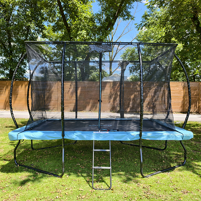 This rectangular trampoline offers a larger bounce area and more consistent elasticity, making it ideal for active jumpers and gymnasts. The W-leg structure also provides superior stability compared to round models.